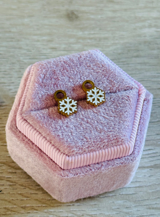 White Snowflake Charm Hoops