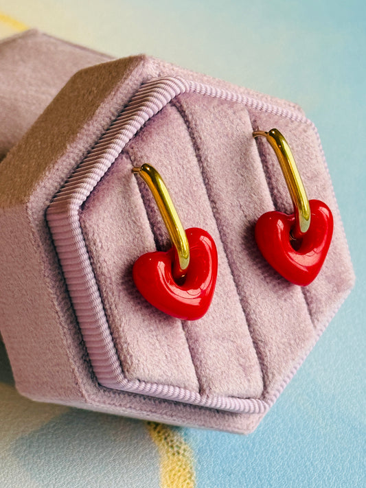 Red heart dangle huggie hoops