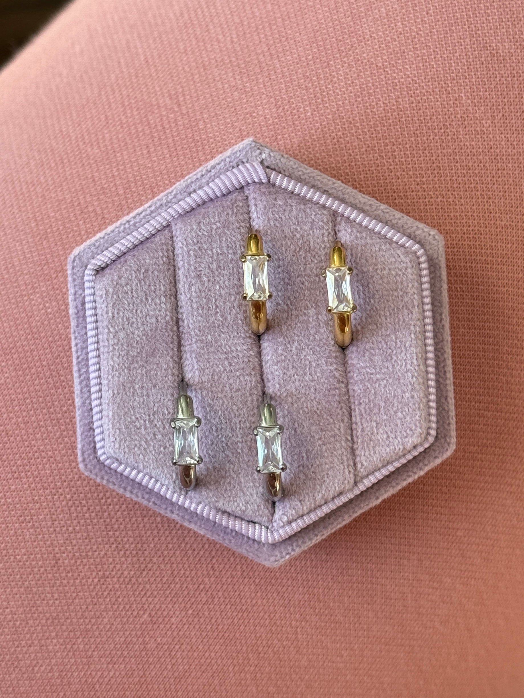 Made of 18k gold PVD coated medical grade stainless steel and cubic zirconia.