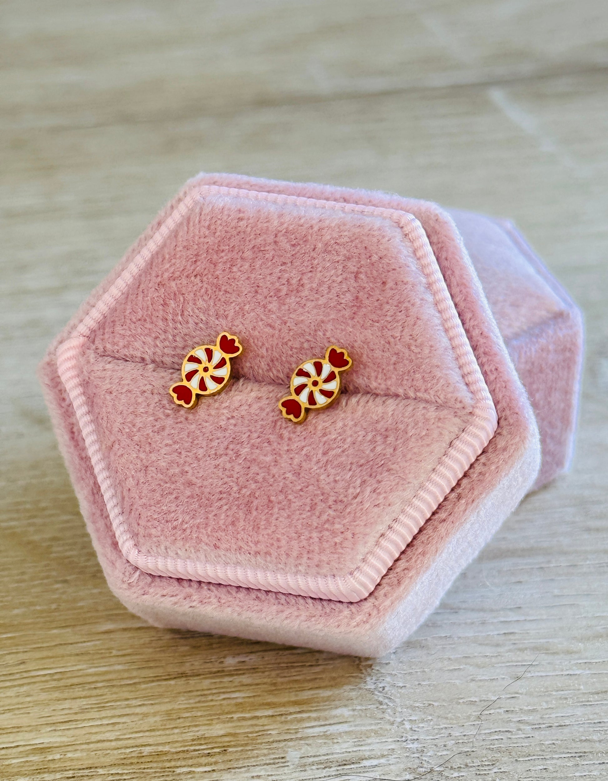 These super cute peppermint candy stud earrings are perfect for girls, teens, and moms who love cute, Christmas jewelry that’s also safe for sensitive ears.